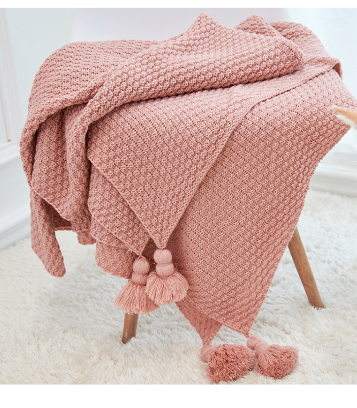 Pure Cotton Blanket Knit Pom Pom Blanket
