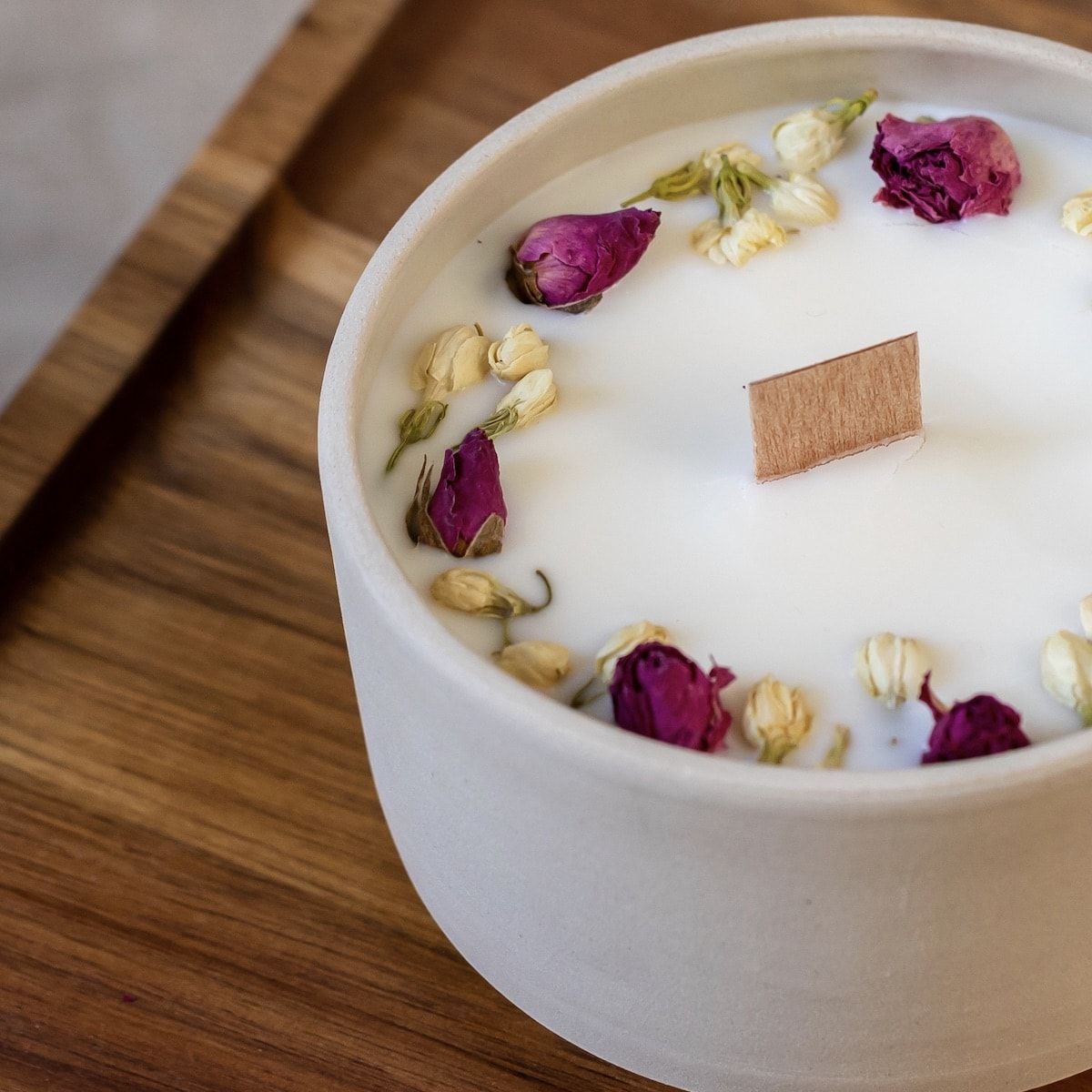 Rose Scented Organic Soy Wood Wick Luxury Candle